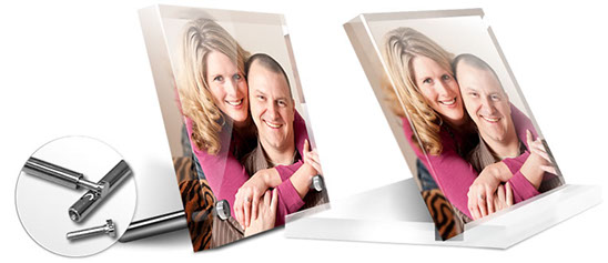 Votre photo sur verre acrylique est disponible avec une épaisseur de 5 mm. Pour la présentation de vos photos, vous avez le choix entre des pieds chromés ou un support en verre acrylique.